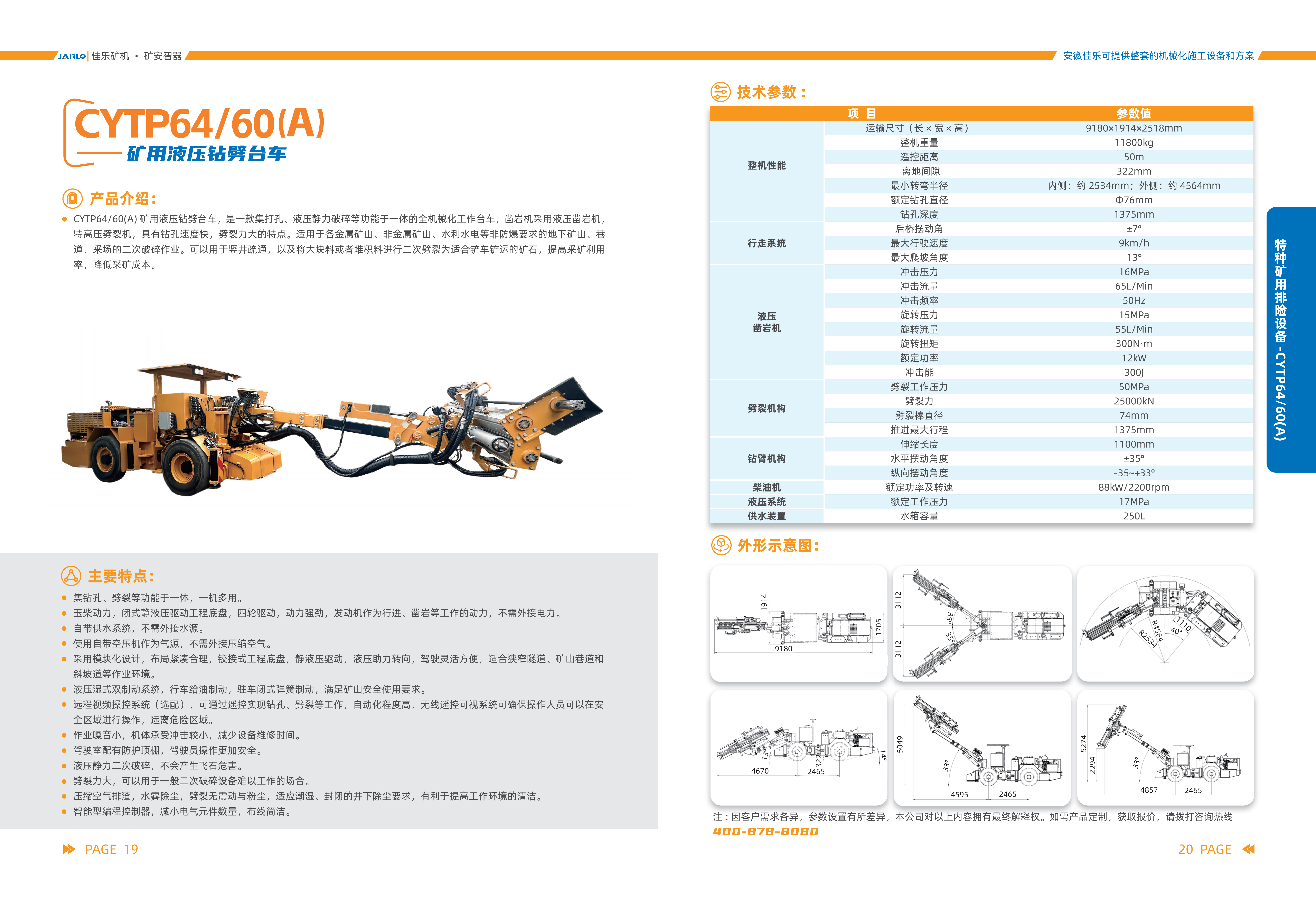 2.玉柴動(dòng)力,閉式靜液壓驅(qū)動(dòng)工程底盤(pán),四輪驅(qū)動(dòng),動(dòng)力強(qiáng)勁,發(fā)動(dòng)機(jī)作為行進(jìn)、鑿巖等工作的動(dòng)力,不需外接電力。